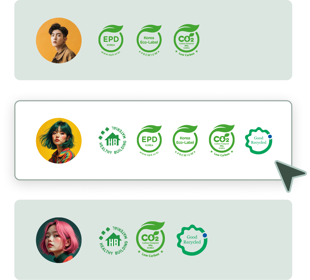 국내외 검증된 친환경 인증 자재부터 일반 자재까지,